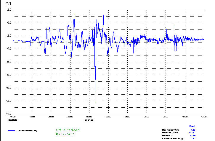 Voltage measured on pipelines